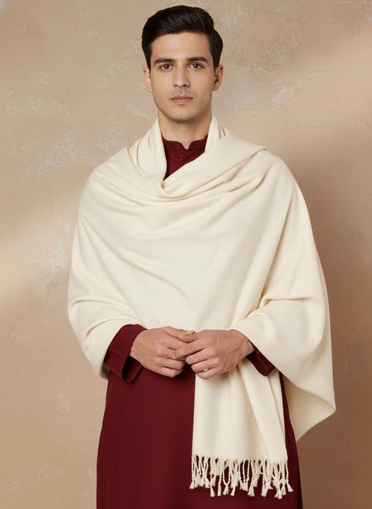 Light Weight Fine Wool Luxurious Stole for Men | White