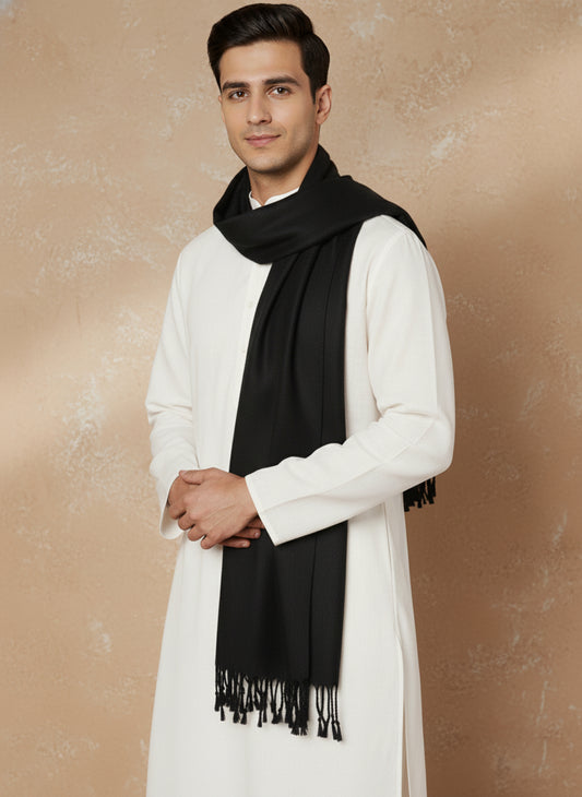 Woven Stole for Men with Daur Border in Kashmiri Design | Black