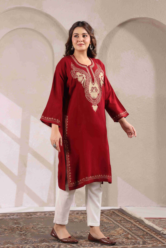 Kashmiri Pheran with Zari Embroidery | Maroon