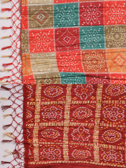 • Printed Bandhani Chinnon Dupatta for Women Pack of 2 | Maroon and Multicolor