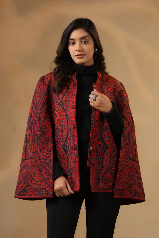 Women's Royal Designer Paisley Weave Cape Jacket | Red