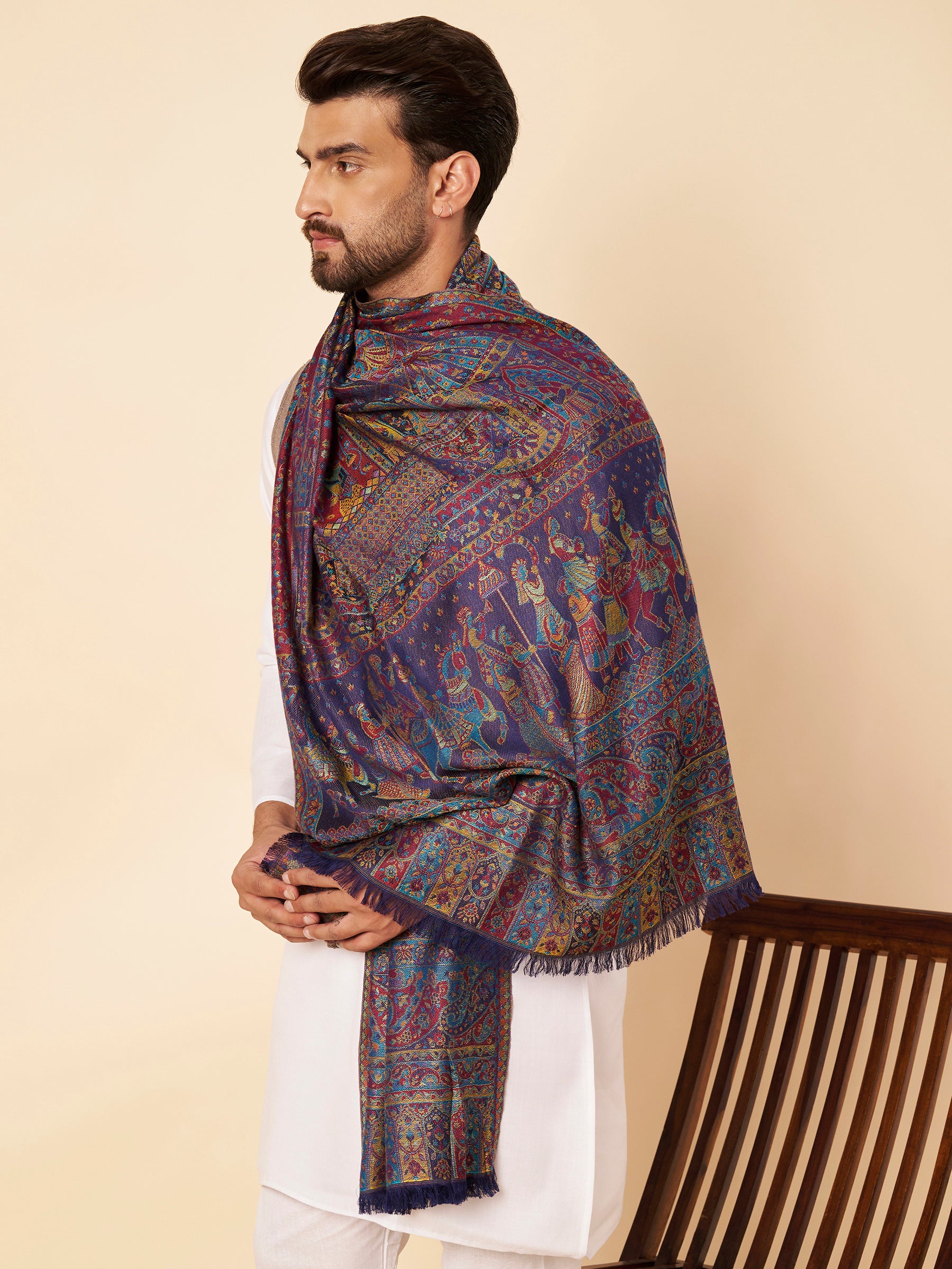Kani Darbar Weave Soft Woolen Stole for Men | Blue