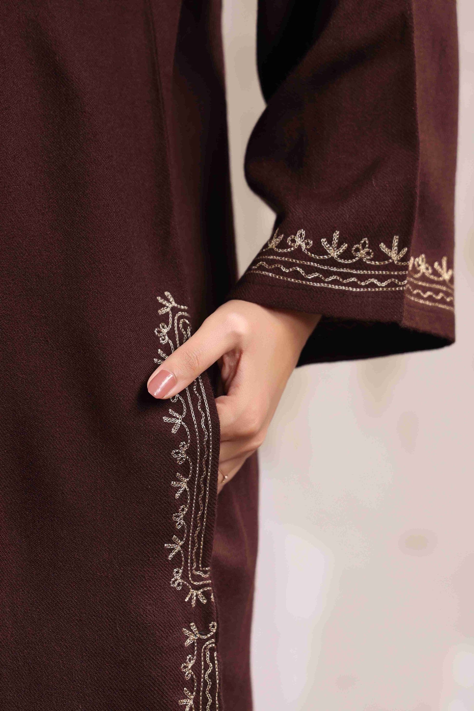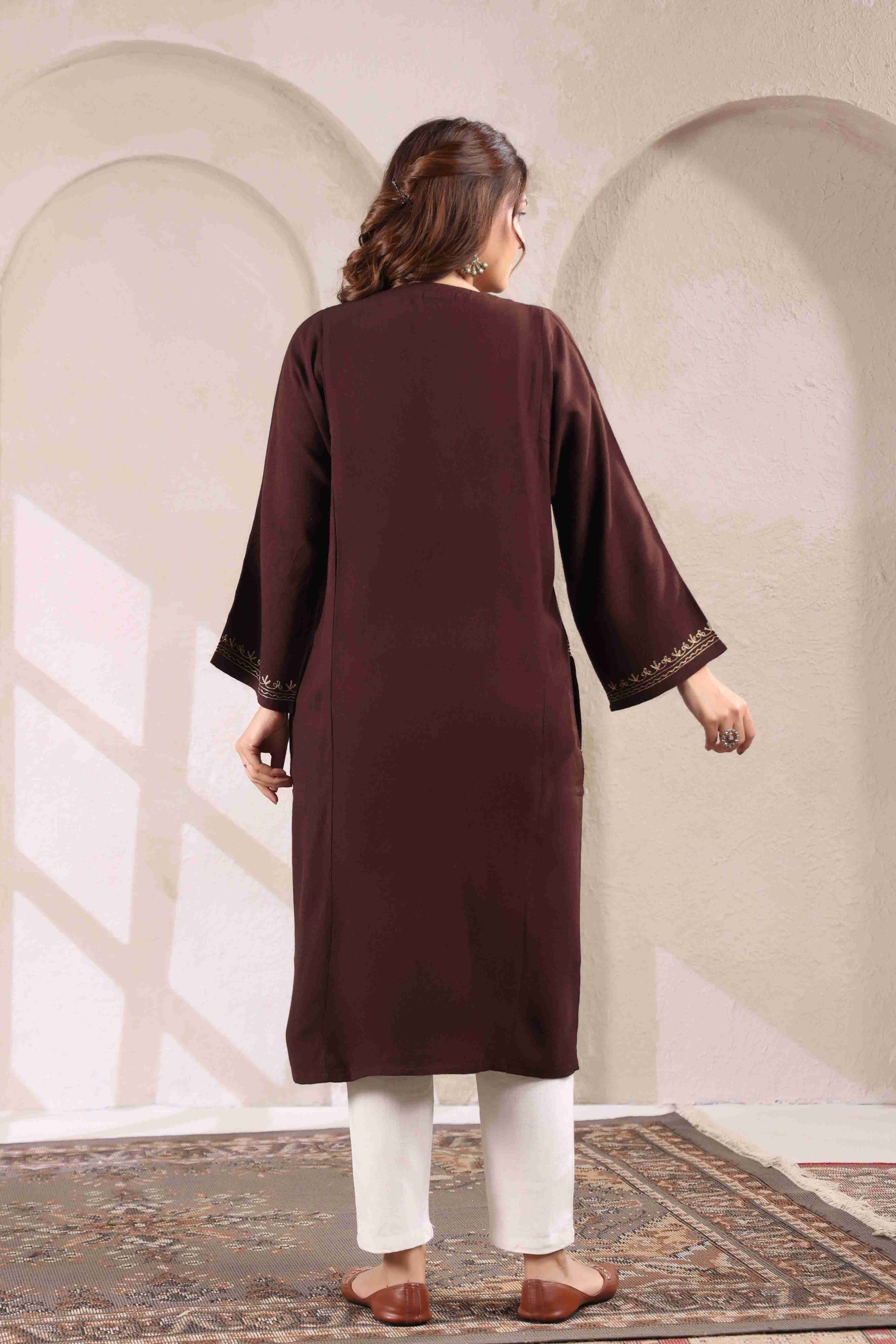 Kashmiri Pheran with Zari Embroidery | Brown