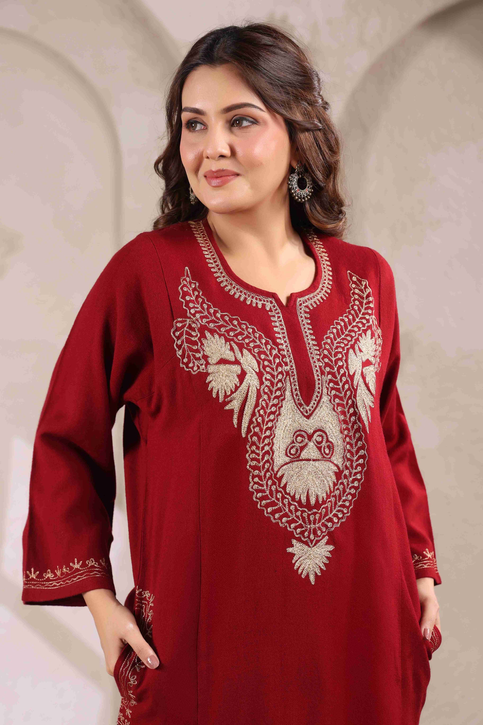Kashmiri Pheran with Zari Embroidery | Maroon