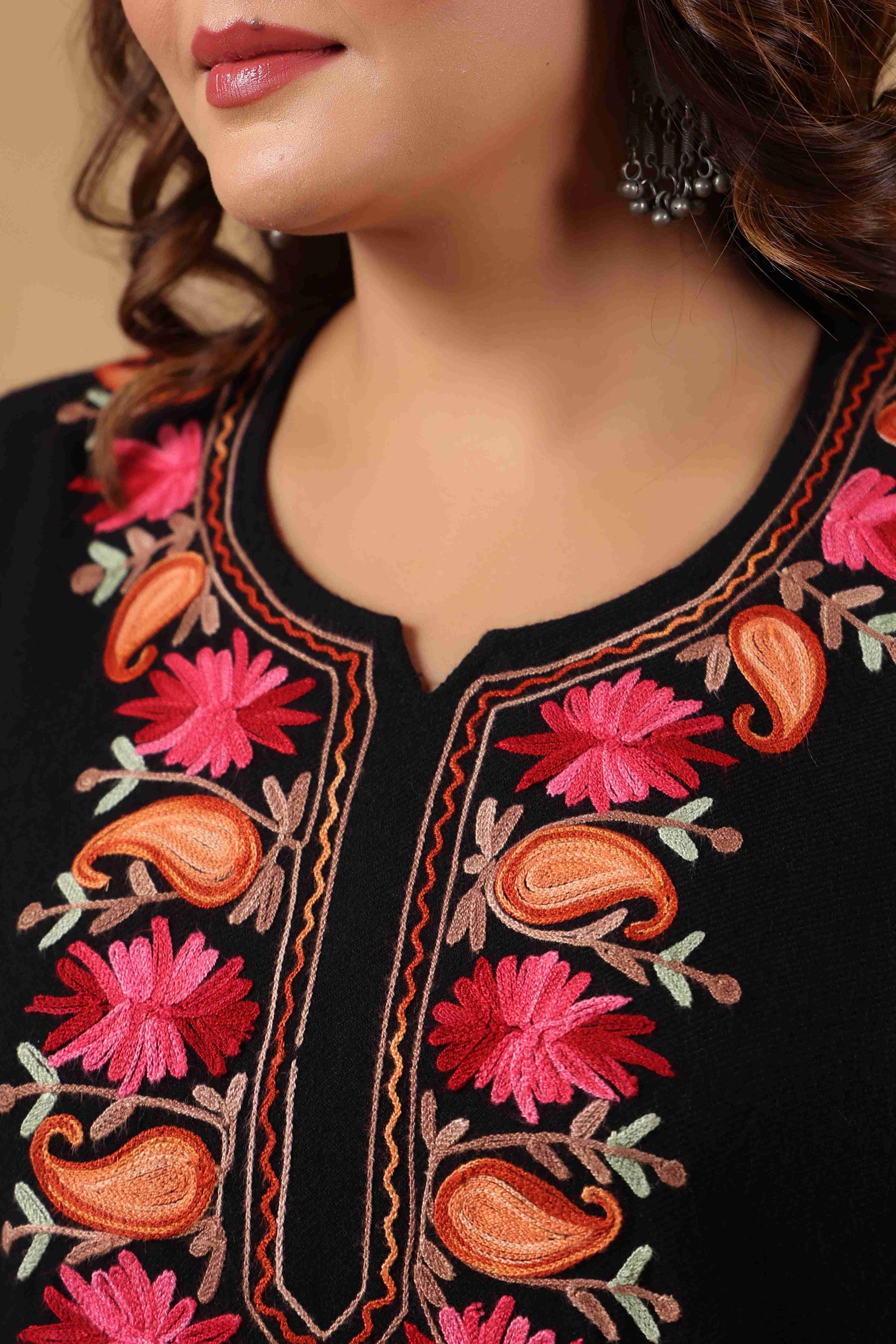Multicolor Aari Embroidery Kashmiri Pheran | Black