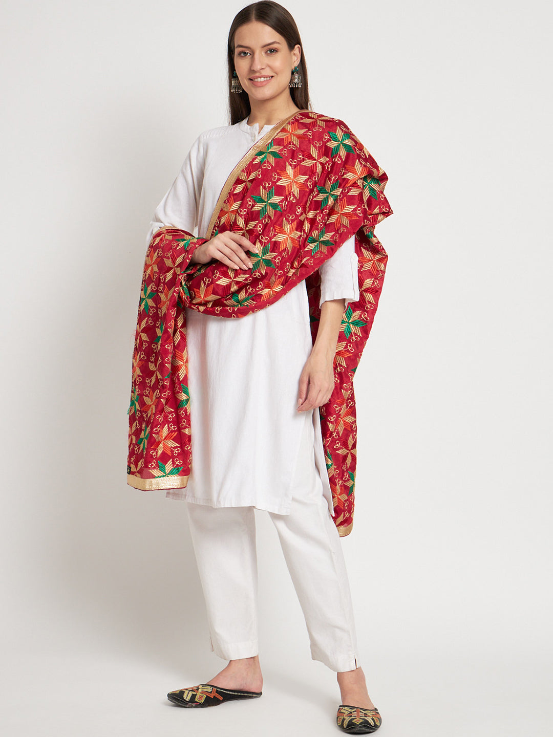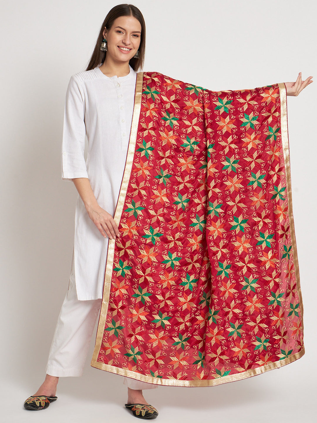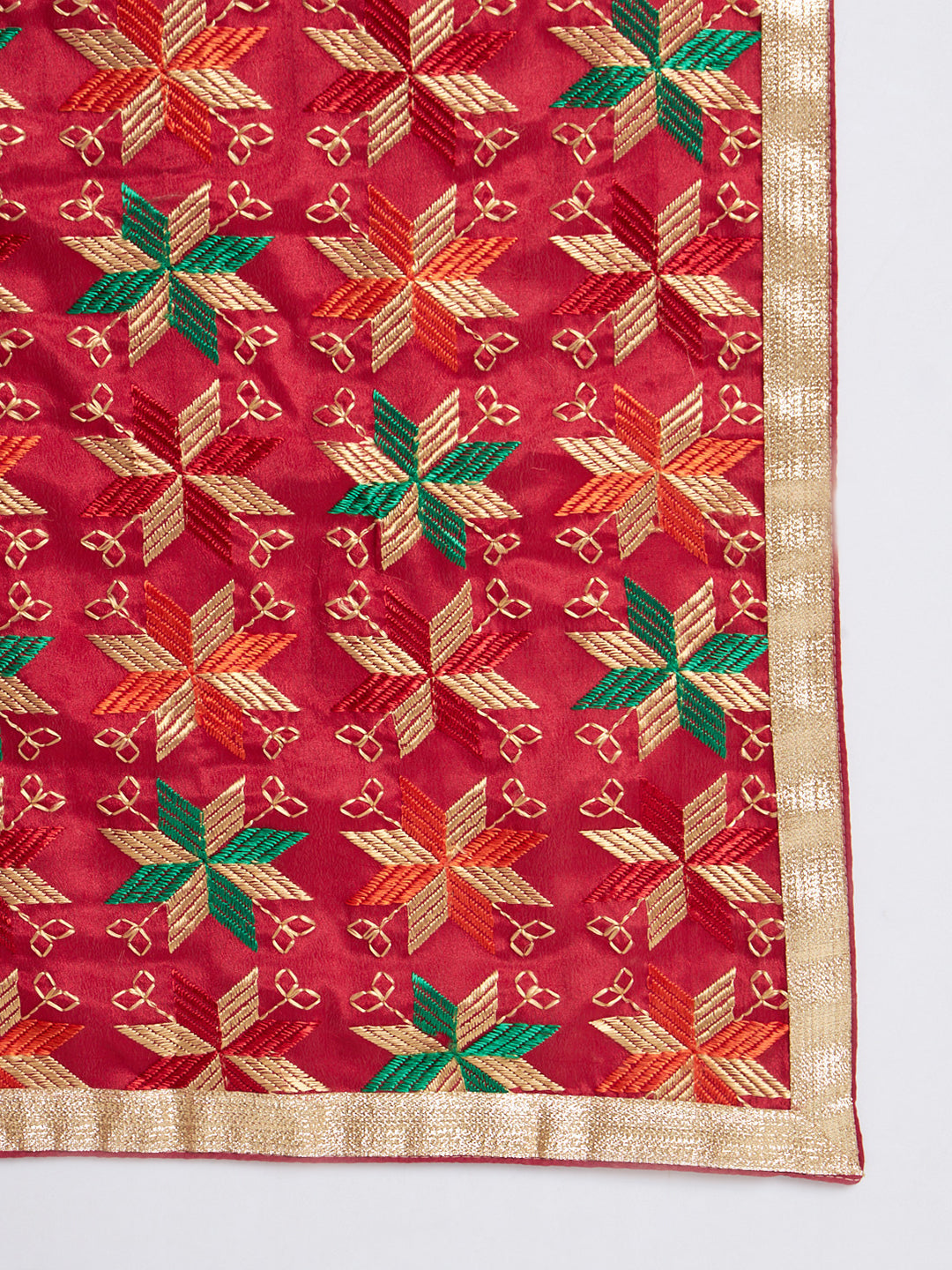 Punjabi Bagh Phulkari Dupatta with Heavy Embroidery | Red