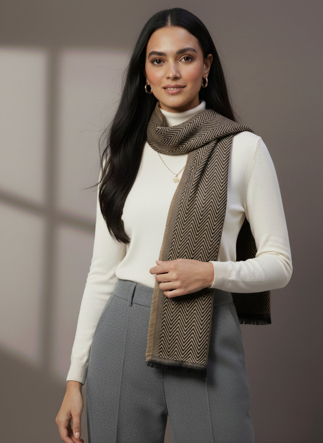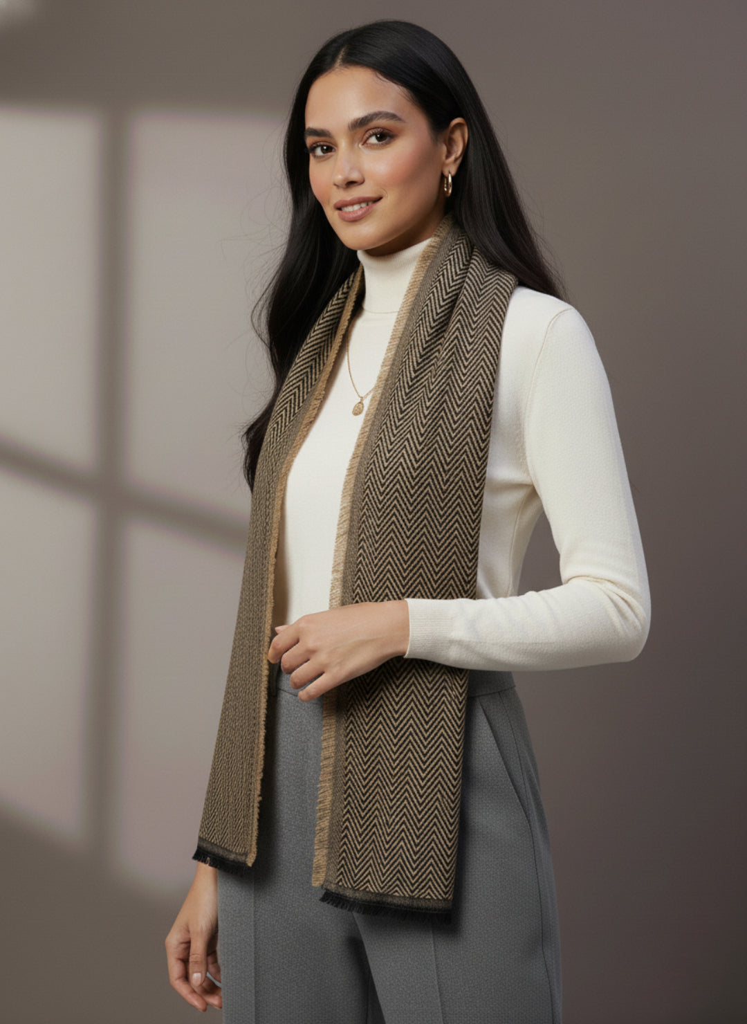 Soft Woollen Muffler for Women | Light Brown Zigzag Scarf