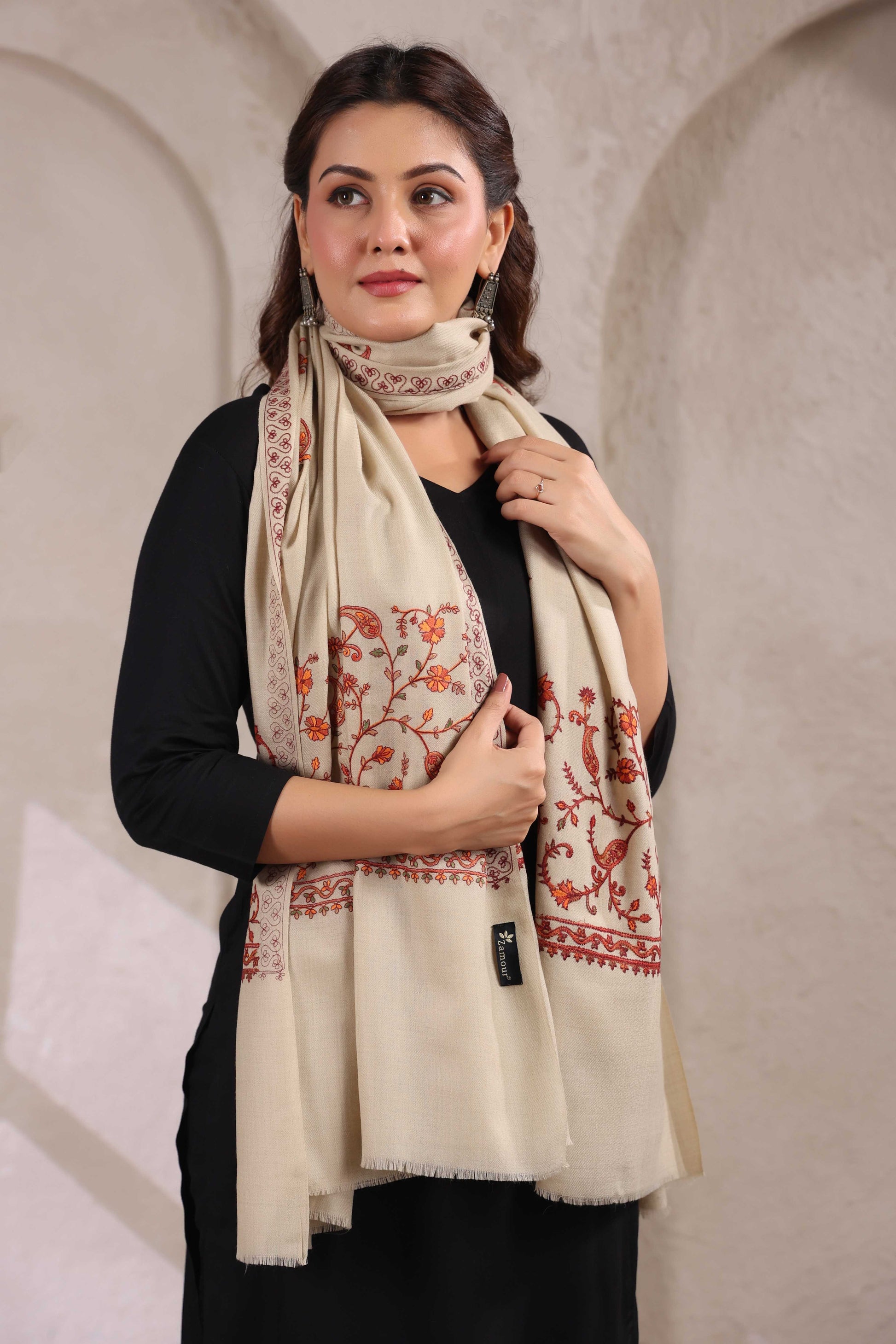 Sozni Floral Embroidery Kashmiri Shawl | Beige
