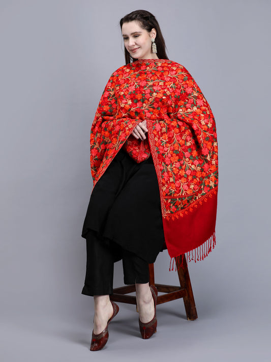 Kashmiri Aari Embroidery Woollen Stole | Red