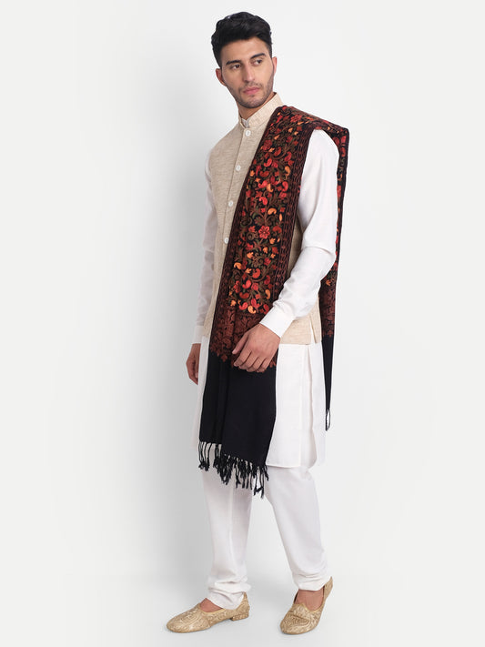 Punjabi Men's Stole with Kashmiri Aari Jaal Embroidery | Black