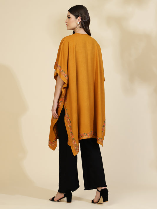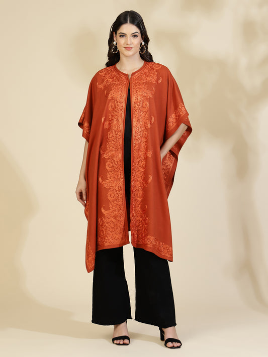 Zari Embroidery Woollen Full Sleeves Cape Shrug | Black