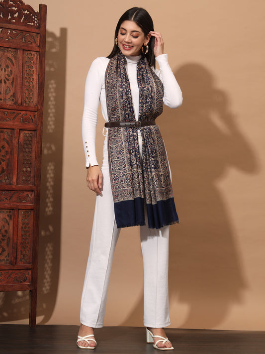 Kani Weave Woven Stole for Women in Paisley Jaal Patterns | Blue