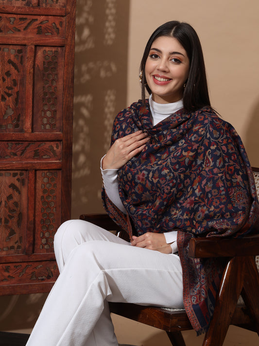 Kani Weave Floral Jaal Pattern Shawl For Women | Blue