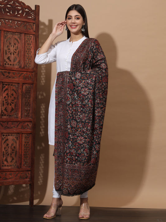 Kani Weave Woven Shawl for Women in Floral Patterns | Black