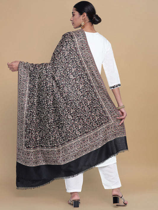 Kani Paisley Weave Pure Wool Shawl For Women | Black