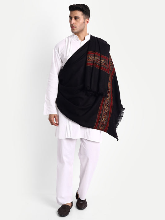 Men's Traditional Kullu Weave Himalayan Shawl | Black