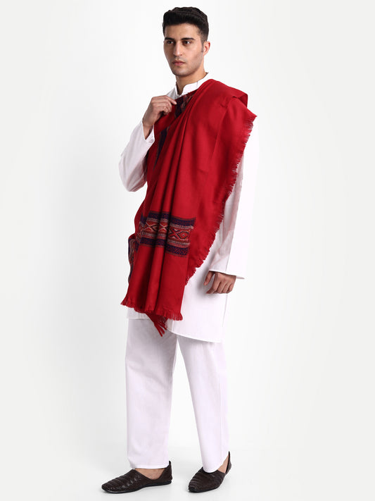 Men's Traditional Kullu Weave Himalayan Shawl | Maroon