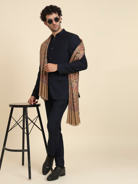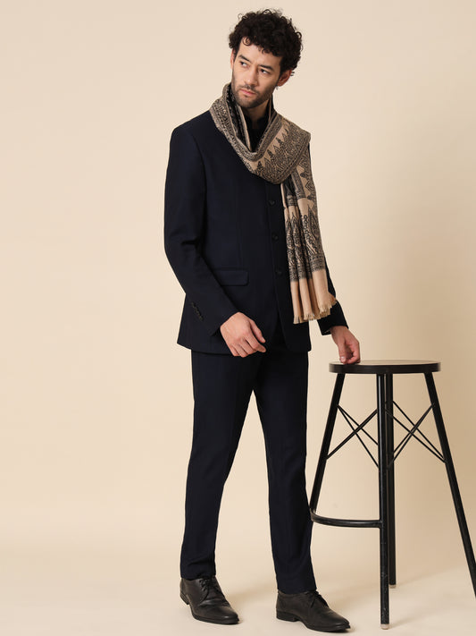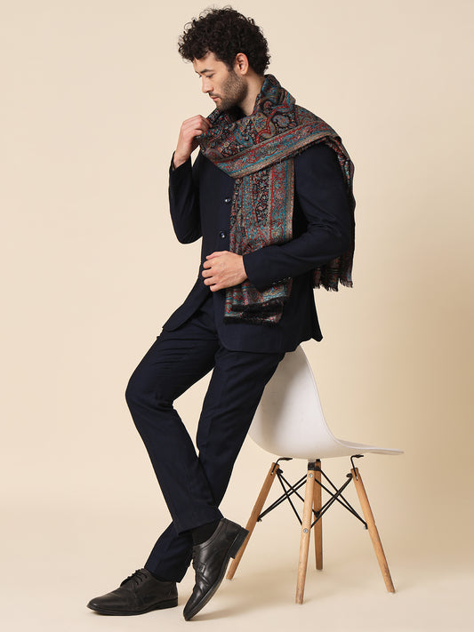 Kani Pure Wool Shawl for Men with Paisley Equisite Pattern | Blue