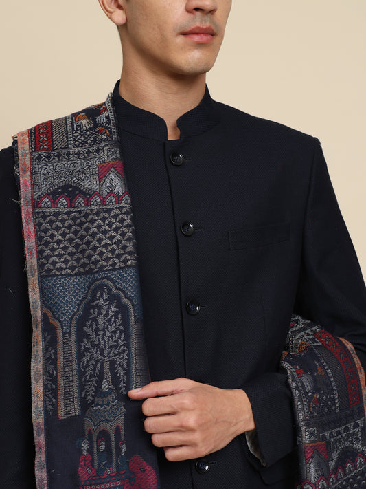 Kani Weave Woven Shawl for Men in Royal Patterns | Black