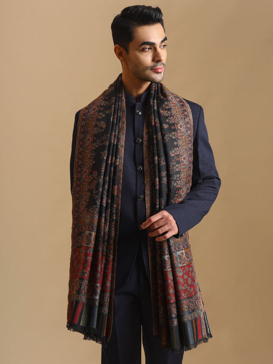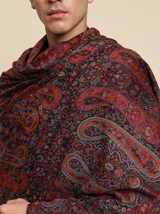 Kani Weave Woven Shawl for Men in Royal Mughal Patterns | Black