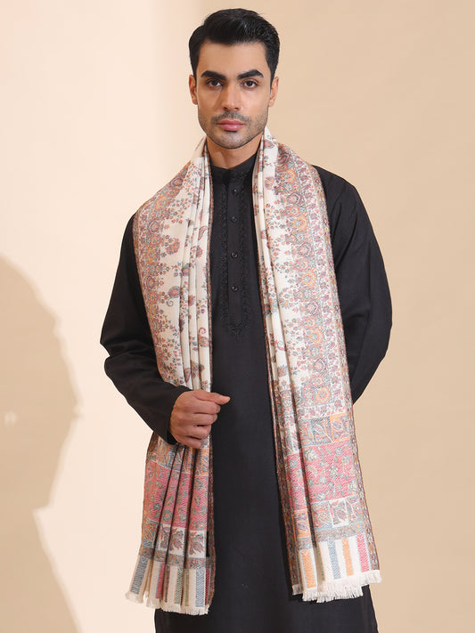 Kani Pure Wool Shawl for Men with Paisley Equisite Pattern | White