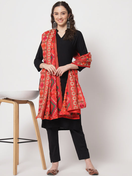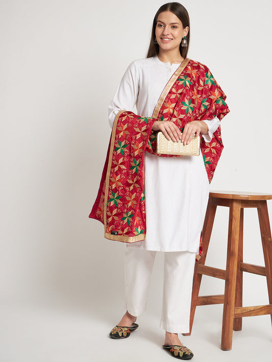 • Punjabi Bagh Phulkari Dupatta with Heavy Embroidery | Red