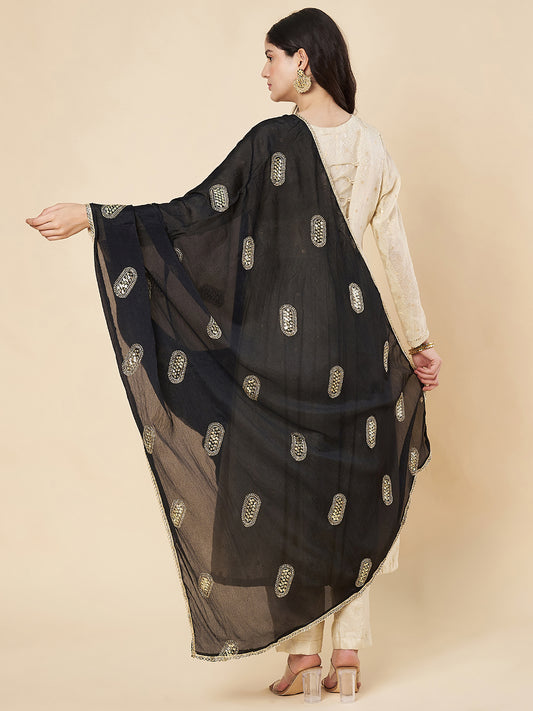 • Pure Cotton Sequin Self Work Dupatta for Women | Black