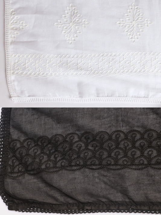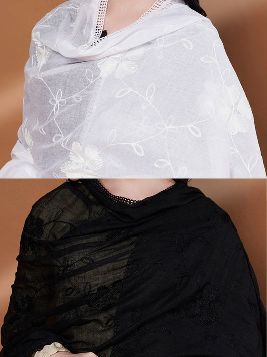 • Floral Embroidery Cotton Dupatta for Women Pack of 2 | White and Black