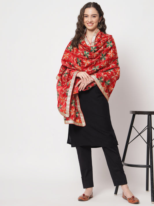 Punjabi Bagh Phulkari Dupatta with Heavy Embroidery | Red