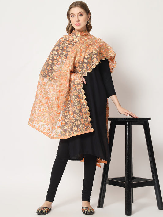 Organza Phulkari Dupatta with Heavy Embroidery | Peach