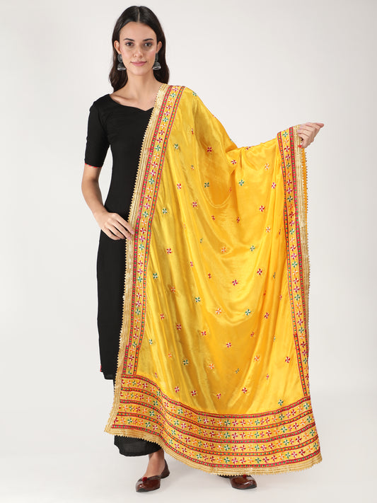 Punjabi Phulkari Dupatta with Heavy Embroidery Border | Yellow