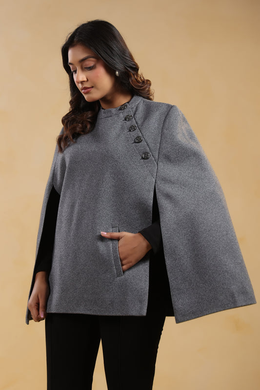 Women's Tweed Luxury Cape Jacket Shrug | Grey