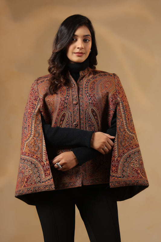 Woven Jamawar Designer Luxury Cape Jacket for Women | Multicolor