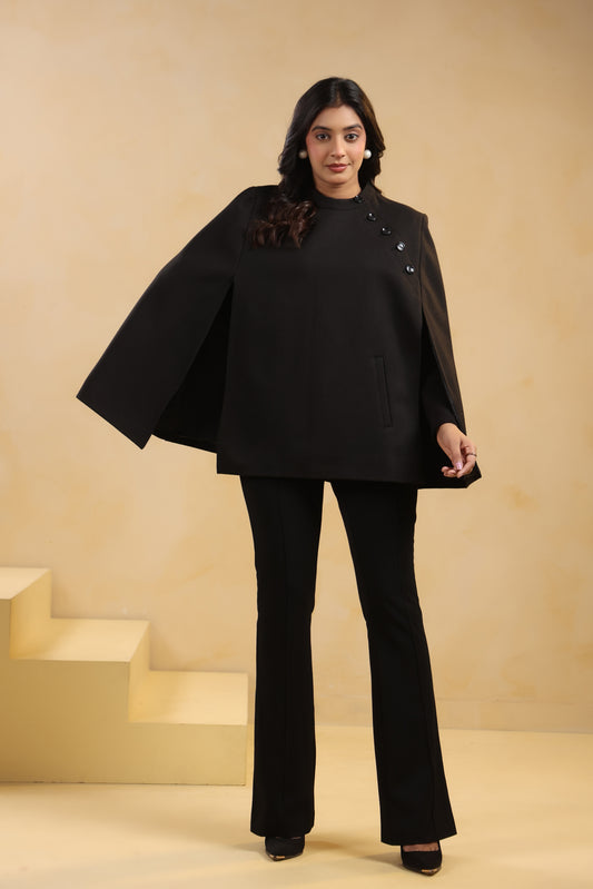 Women's Tweed Luxury Cape Jacket Shrug | Black