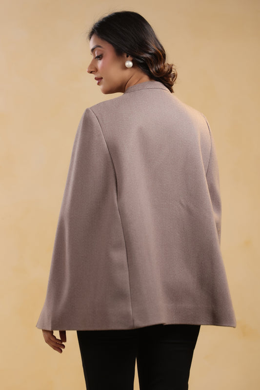 Woven Checks Stylish Cape Jacket for Women | Dark Brown